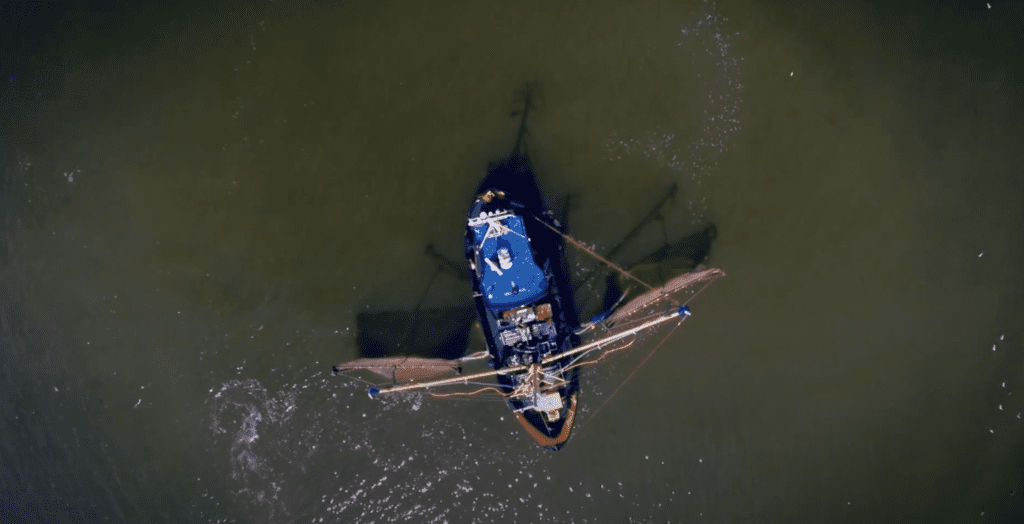 Separating bycatch from shrimp and sorting shrimp by size (3 categories). In partnership with De Boer RVS.